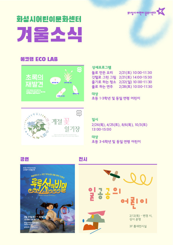 이와 함께 화성시어린이문화센터는 전시와 공연 프로그램도 선보인다.