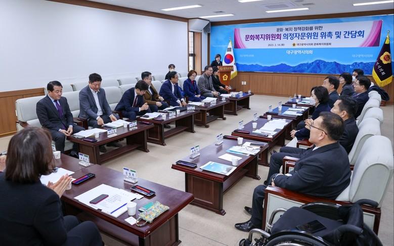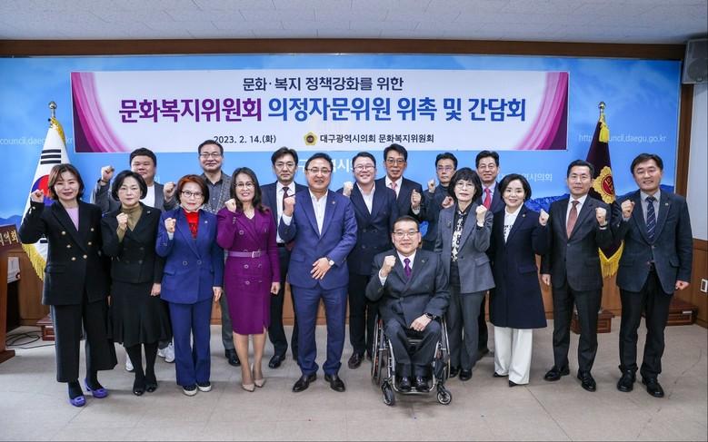 [대구 세계타임즈=한성국 기자] 대구시의회 문화복지위원회(위원장 김재우)는 2월 14일(화) 시의회 2층 회의실에서 의정자문위원을 새롭게 위촉하고, 2023년 주요현안 및 의정활동에 대한 정책 자문 간담회를 개최했다.