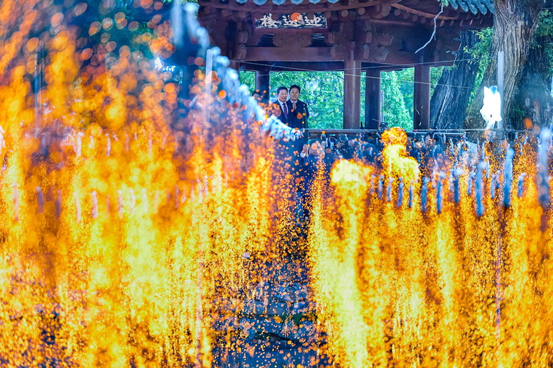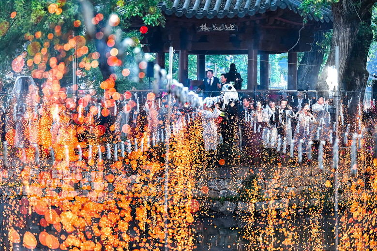 “와…” “아름답다…” 낙화봉에서 불꽃이 떨어지기 시작하자 곳곳에서 일제히 탄성이 새어나왔다. 불꽃이 흩날릴 때마다 보는 이들의 마음속에도 하나씩 환한 불이 켜지는 아름다운 순간이다.