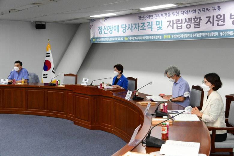 [광주 세계타임즈=손권일 기자] 광주광역시의회는 16일 오후 2시 시의회 예산결산특별위원회실에서 ‘정신장애인 당사자 조직 활성화 방안마련’이라는 주제로 정책토론회를 개최했다.