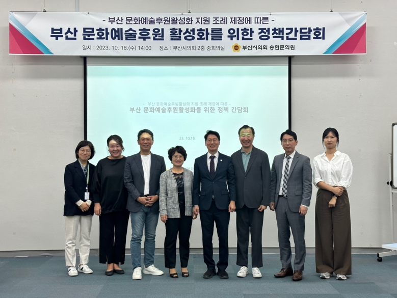 [부산 세계타임즈=이용우 기자] 지난 임시회(제316회)에서 행정문화위원회 소속 송현준의원(강서구2, 국민의힘)이 발의 한 「부산광역시 문화예술후원활성화 지원 조례」 후속으로 실질적인 시책 추진을 촉구하기 위한 관계자 간담회를 지난 18일 시의회 중회의실에서 개최하였다.