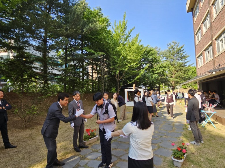 이주형(3학년) 학생회장은 “아침 등굣길에 교육감님과 선생님들의 응원을 들으니 친구들과 활기찬 하루를 보낼 수 있을 것 같다. 스승의 날을 맞이하여 항상 우리들의 곁에서 ‘참 되거라 바르거라’를 가르쳐주시는 선생님들께 ‘스승, 존경의 대상’으로 마음을 전하고 싶다.”고 소감을 전했다.