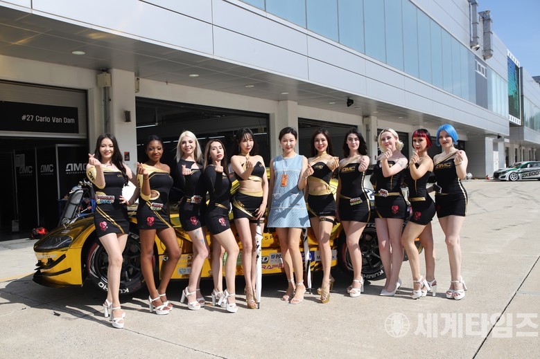 왼쪽부터 바담(MONGOLIA).루니(CANADA),브릿니(USA),스테파니아(COLOMBIA),한국 레이싱모델 정혜정,이수아(K-HOLICS GROUP, 글로벌 모델 에이전시 대표이사), 한국 레이싱모델 안지아,아이오라(SPAIN),보라(USA),아이리스(TURKEY),율리아(BELARUS)