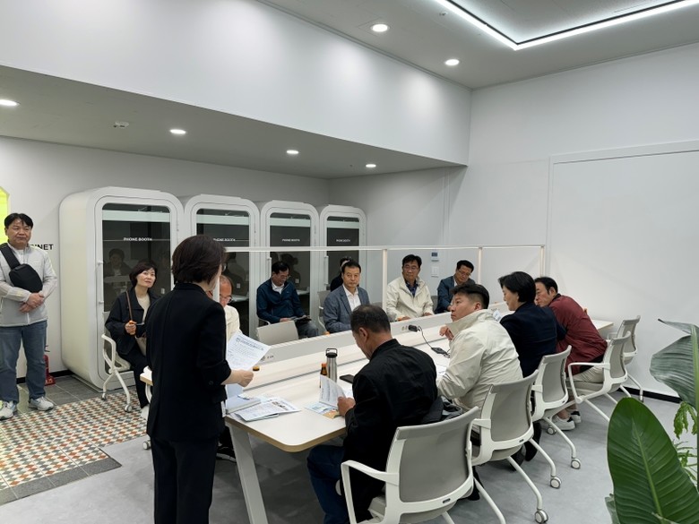 현장활동 첫 번째 일정으로 제주특별자치도에서 운영하는 공공형 워케이션 아일랜드 워크랩을 방문해 시설을 둘러보고 관계자로부터 워케이션 센터 운영과 현황에 대해 청취했다.