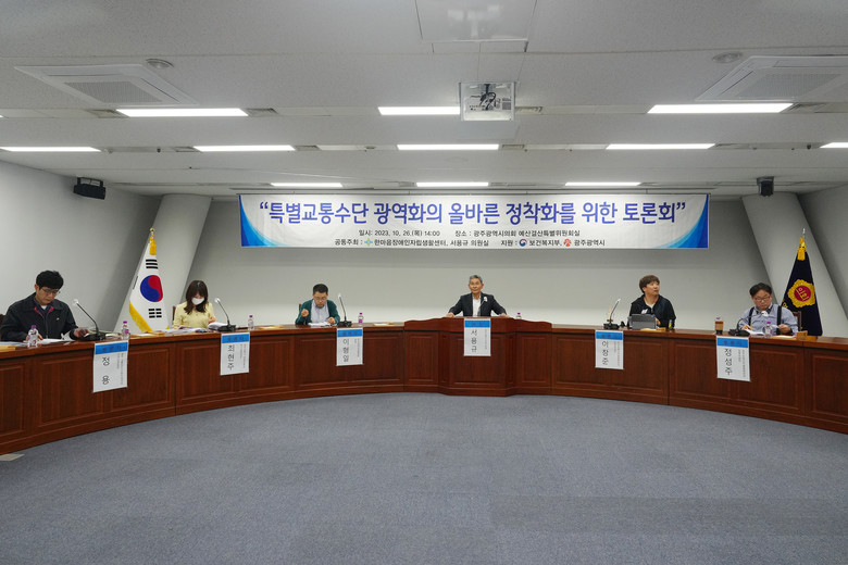 [광주 세계타임즈=손권일 기자] 광주광역시의회는 26일 오후 2시 시의회 5층 예결위 회의실에서 ‘특별교통수단 광역화의 올바른 정착화를 위한 토론회’ 라는 주제로 정책토론회를 개최했다.