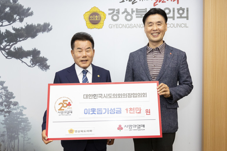 한편, 이 날 전달식에는 배한철 의장, 박영서·박용선 부의장, 이칠구 의회운영위원장과 정동의 경상북도 사회복지공동모금회 사무처장이 함께 했으며, 집중호우 피해 지역에 대한 다양한 지원방안에 대해서도 의견을 교환했다.