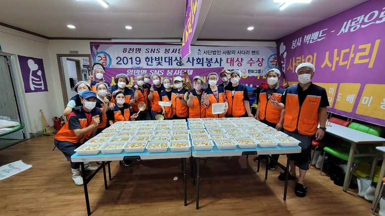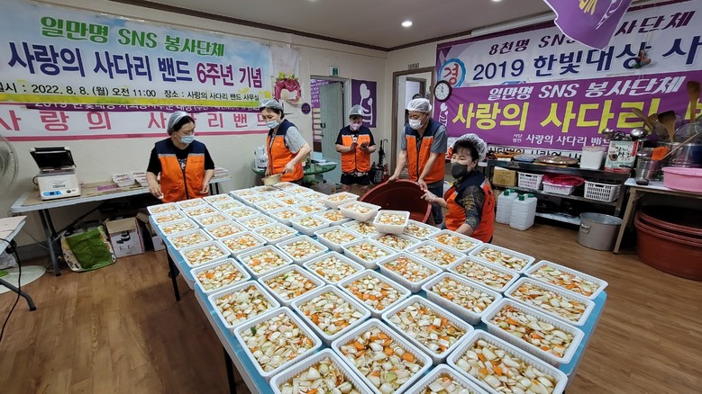 7년동안 지방자치단체의 보조금 지원 없이 꾸준한 봉사를 실천하고 있는 사랑의 사다리 밴드는 매월 300가정의 소외계층에게 밑반찬 봉사를 하고 있다.
