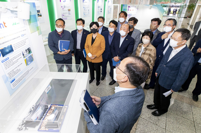 이어 방문한 경상북도환경연수원에서는 도민들의 환경보전 의식 증진과 실천의지 배양의 필요성을 강조하면서, 경상북도환경연수원이 기후위기 대응과 탄소중립 실현을 위한 막중한 책임감과 사명감을 가지고 경상북도 환경전문가 육성과 환경교육의 요람이 될 수 있도록 노력해줄 것을 당부했다.
