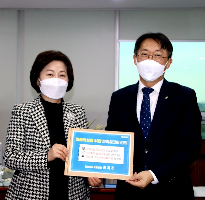 [세계타임즈 이영진 기자]경기 화성(갑) 송옥주 국회의원(더불어민주당·국회 여성가족위원회 위원장·환경노동위원회)은 12월 14일(화), 한국토지주택공사(LH) 김현준 사장을 만나 화성 관내 지역 현안에 대해 논의했다고 밝혔다.