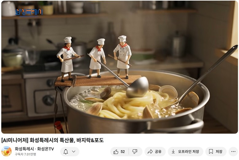 이와 함께, 시는 지난 9월, 지역의 대표 특산물을 소재로 한 AI 미니어처 영상 시리즈를 공개했다. 수향미, 바지락, 송산포도를 각각 주제로 제작한 이번 영상은 AI가 구현한 섬세하고 아기자기한 비주얼과 감각적인 연출로 짧은 시간 안에 화성의 맛과 정서를 생생하게 담아냈다.