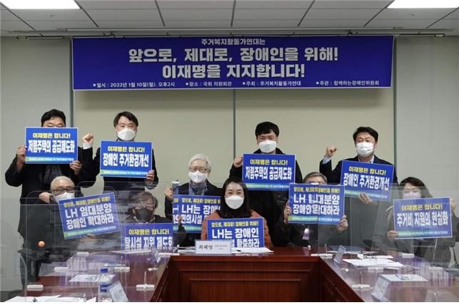 지난 10일, 주거복지활동가연대가 더불어민주당 선대위 「함께하는장애인위원회(위원장 최혜영의원)」와 국회의원회관에서 간담회를 열고 더불어민주당 이재명 대선후보 지지선을 한 것에 이어, 21일에는 장애인직업재활시설협회 간담회와 경기도·강원도·전라북도·충청남도 회장의 지지선언이 있었다.