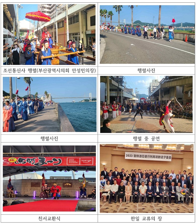 정사로서 이번 시모노세키 조선통신사 사행을 이끈 안성민 부산광역시의회 의장은 “코로나19로 중단됐던 조선통신사 사행을 복원하는 과정을 통해 부산의 역할과 중요성이 부각되기를 기대하고 부산과 시모노세키시 나아가 대한민국과 일본이 더욱 가까워지고 발전된 미래로 나아가기를 희망한다”고 밝히고 “중요한 역사적 자산인 조선통신사를 우리 국민은 물론이고 전 세계인이 그 가치를 알 수 있도록 다양한 사업을 펼쳐 나가겠다”고 말했다.