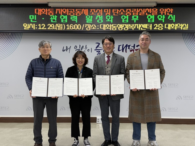 송용석 대화동탄소중립실천연대 회장은 “이번 협약은 지역의 다양한 주체가 연결돼 공동의 가치를 만들어 가는 과정”이라며 “주민이 체감할 수 있는 탄소중립 실천으로 이어지길 바란다”고 말했다.