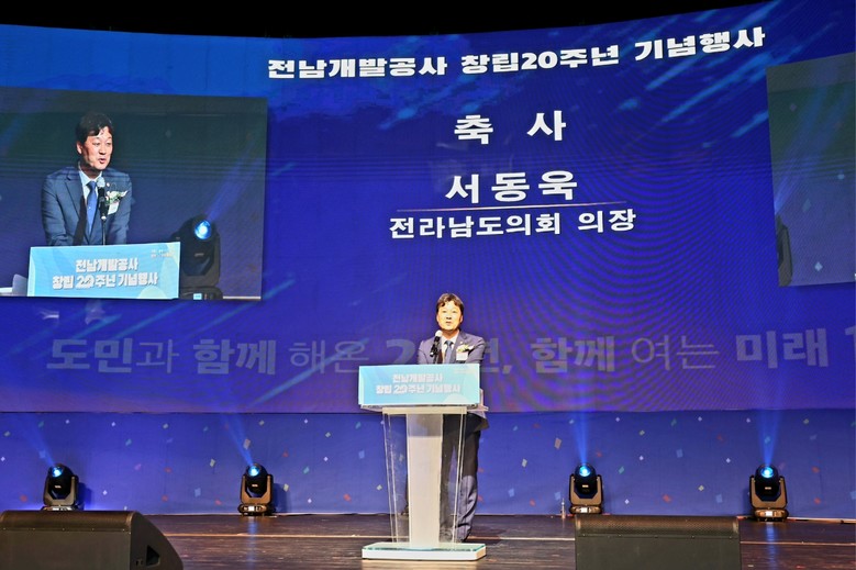 [전남 세계타임즈=우덕현 기자] 전라남도의회 서동욱 의장은 6월 12일 무안군 남도소리울림터에서 열린 전남개발공사 창립 20주년 기념식에 참석했다.