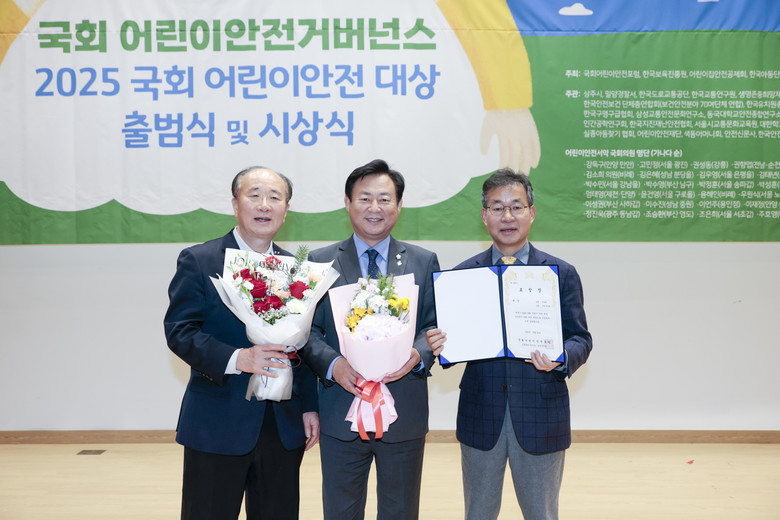 [구리시 세계타임즈=송민수 기자] 12월 22일 국회 어린이안전포럼이 주최한 국회 어린이안전거버넌스 출범식 및 2025 어린이 안전 대상 시상식에서 구리시의회 신동화 의장이‘2025 어린이안전대상 의회 부문’을 수상했다.