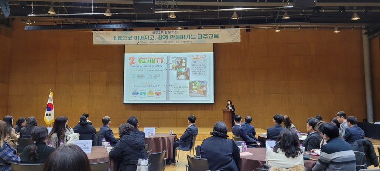 [파주시 세계타임즈=송민수 기자] 경기도파주교육지원청(전선아 교육장)은 12월 2일(화) 지지향(다목적홀)에서 파주지역 교육 주체들이 한 자리에 모여 2025 파주교육 정책 방향을 공유하고, 교육공동체 간 소통을 강화하는‘파주교육 함께 가다, 교육공동체 정책 소통.나눔’ 행사를 개최하였다.