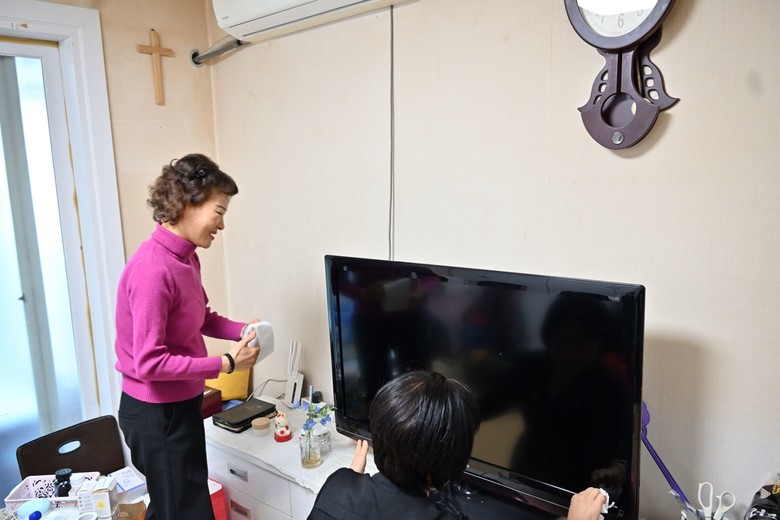 이날 신천지 광명교회는 다섯 명의 성도가 방문해 각각 대청소와 반찬 전달을 진행했다. 최 권사는 “누추하고 좁은데 여러 사람이 와서 죄송하다”며 음료와 고구마를 대접하면서 고마움을 표했다.