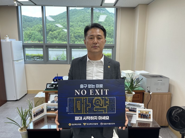[경북 세계타임즈=한성국 기자] 경북도의회 기획경제위원회 김진엽 의원(포항)이 6월 27일 마약 예방 캠페인 ‘노 엑시트(NO EXIT)’에 동참했다.