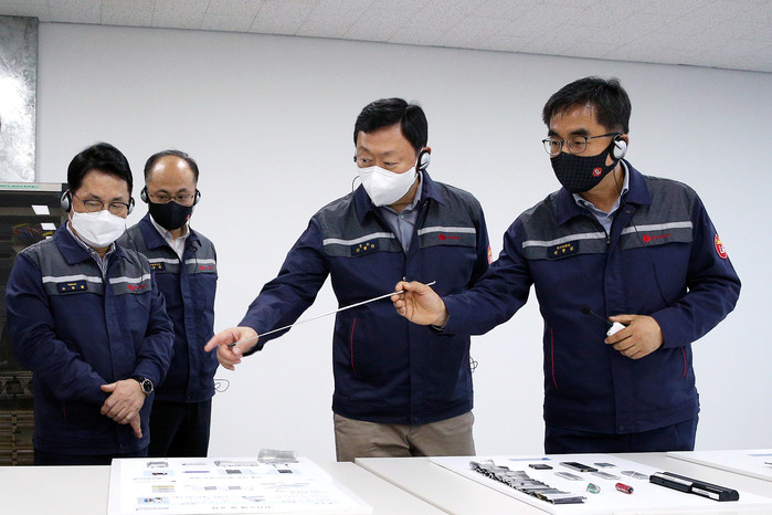 롯데정밀화학 인천공장 일정을 마친 신동빈 회장은 이어 경기도 안산시 반월산업단지에 위치한 롯데알미늄 안산1공장도 방문했다. 롯데알미늄은 지난해 9월 안산1공장의 2차전지용 양극박 생산라인 증설 작업을 완료했다.
