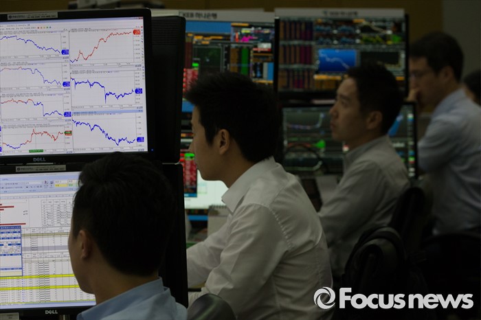 (서울=포커스뉴스) 영국의 유럽연합(EU) 탈퇴를 의미하는 '브렉시트'가 확정된 가운데 24일 오후 서울 중구 KEB 하나은행 명동 본점 딜링룸에서 딜러들이 업무를 보고 있다. 이날 코스피는 전날 대비 61.47p(3.09%) 내린 1,925.24, 코스닥은 32.36p(4.76%) 내린 647.16, 환율은 29.7원 오른 1,179.9원을 기록하며 장을 마감했다.