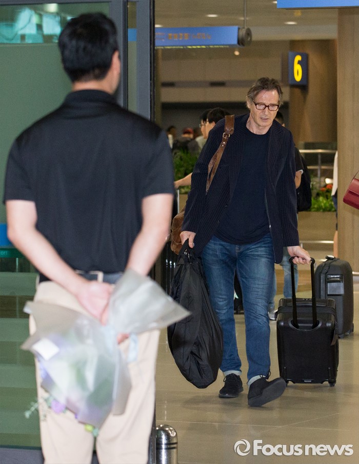 (인천공항=포커스뉴스) 영화 '인천상륙작전'에서 맥아더 장군 역을 맡은 할리우드 배우 리암 니슨이 12일 오후 인천 중구 인천국제공항으로 입국하고 있다. 리암 니슨은 영화 홍보차 2박 3일간 한국에 머물며 내한 기념 기자회견과 레드카펫 행사 등에 참여한다.