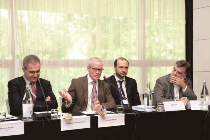 2016 세계인쇄회의 공식 홈페이지에는 행사에 관한 다양한 정보가 업데이트되고 있으며 행사 관람 사전등록도 온라인을 통해 신청받고 있다.'2015 세계인쇄회의'에서 컨퍼런스를 주재하고 있는 마이클 마킨(왼쪽 두번째) WPCF 회장과 프란시스 호스텐치(왼쪽) Intergrf 회장.<사진출처=세계인쇄회의>
