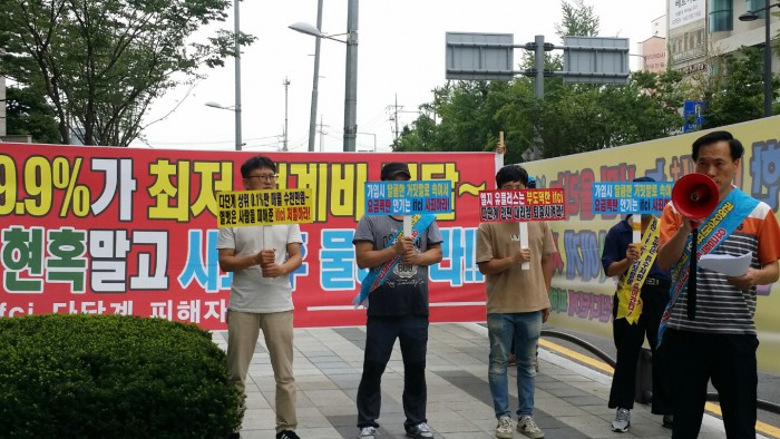 (서울=포커스뉴스) 휴대폰 다단계 업체인 IFCI 피해자들이 LG유플러스에 통신 다단계를 포기하라고 요구했다. LG유플러스가 해당 업체와 직접적인 연관이 있는 만큼 피해를 보상하라고도 주장했다.