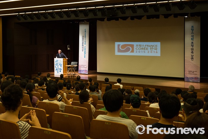 (서울=포커스뉴스) 인천공항을 설계했던 프랑스 건축가 장 미셸 빌모트가 21일 오후 서울 종로구 교보빌딩 컨벤션 홀에서 '토탈 디자인'을 주제로 강연하고 있다.