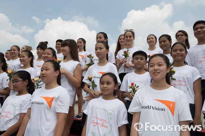 (서울=포커스뉴스) 8일 오전 서울 종로구 광화문광장에서 열린 '월드비전 2016세계어린이합창제' 런치콘서트에서 헝가리, 필리핀 어린이 합창단과 한국 월드비전 합창단이 다음 노래를 위해 대기하고 있다. 올해로 6회를 맞은 '월드비전 2016 세계어린이합창제'는 'Song of Peace-평화의 노래'라는 주제로 8월 6일부터 11일까지 예술의 전당에서 열린다.